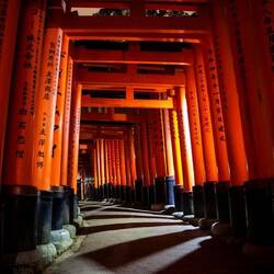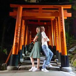 By now, the tide has come in a bit and the torii gate is already standing a bit in the water. We take this opportunity to take a ton more pictures as it's especially beautiful with the evening sun.