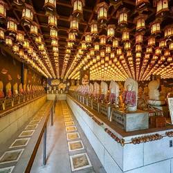 There are some other small temples or shrines in the vicinity. One is almost entirely surrounded by water. Another shrine is hidden in a cave but lit up by hundreds of candles and music is playing inside. The floor is covered by some golden tiles in front of each statue where you can say your prayers.