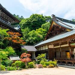 With some more jummy in our tummy, it's time for our next stop: the temple of Dasho-in. It's located near the base of the mountain/hill and doesn't have a major road leading up to it. Nevertheless, it's not hard to find as it's well marked by signs. The temple complex is huge! On the way up, you come along some stairs that are covered with rotatable cylinders. These represent sutras and spinning them ought to have the same effect as actually reading them. We join in the tradition and are lucky not having to read every single one of them (not that we even could).