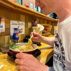 Ramen is a quick meal in Japan, so it's not a fancy restaurant vibe kind of dinner. Having seen some videos online on how to eat this boiling noodle soup and the different types, we order something. Not really knowing if we'll like it or not.