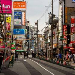 We continue our walk along electronic stores, luna park like stores and comic stores. Every now and then we're amazed by the things you can buy here. Entire stores that look like a luna park that you'd only find at a fare in Belgium embody over here sometimes up to 4 floors of a building.