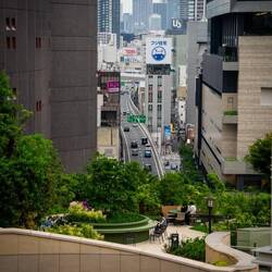 We leave the neighborhood at the Miyashita Park. Not a park at ground level, no no, on the top floor of large construction. On top there's even a small climbing area, skate park, tennis court,...