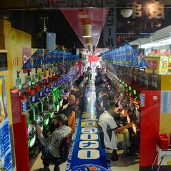 Whilst we’re waiting for our tour guide, we stroll around a bit the little streets. At one point, we pass by a huge gambling shop. It’s actually quite stunning how big gambling addiction is in this country. From luna parks to slot machines, many Japanese are spending a lot of money on it.
