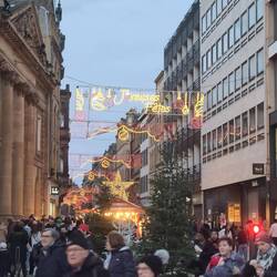 Once wrapped up again for the weather, I set off to find the Moselle river. It was in full flow, but I was able to walk through a large park and over a bridge to reach the Cathedral. There are numerous steps that lead to the 'promenade'. It's a wonder I didn't have a nose bleed. Lots of areas around the city have Christmas fairs and markets. I shall tour them on Sunday.