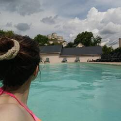 Zurück bei Kurt wollte natürlich auch der Pool noch getestet werden: Das Wasser war angenehm warm, ich in meinem Element 🧜🏻♀️ und die Aussicht auf das Château Gaillard auf der einen Seite & die Seine auf der anderen Seite nicht übel. 😎
