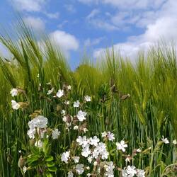 An den Feldern stand ganz viel Mohn. Ich kann mich da gar nicht dran satt sehen, an diesem Kontrast zwischen dem Grün oder Gold und dann diesem kräftigen Rot. Das ist Sommerfeeling pur. 🌾☀️