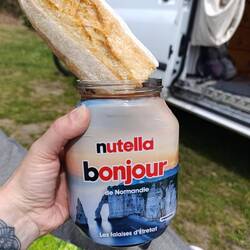 Nachdem ich mich ansonsten gut mit Lebensmitteln eingedeckt hatte, habe ich auf dem Parkplatz noch eine Essenspause gemacht. Mit so leckerem frischen Brot und echt normannischem Camembert. Yammi. 😋😋