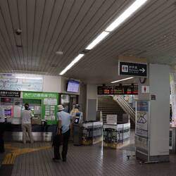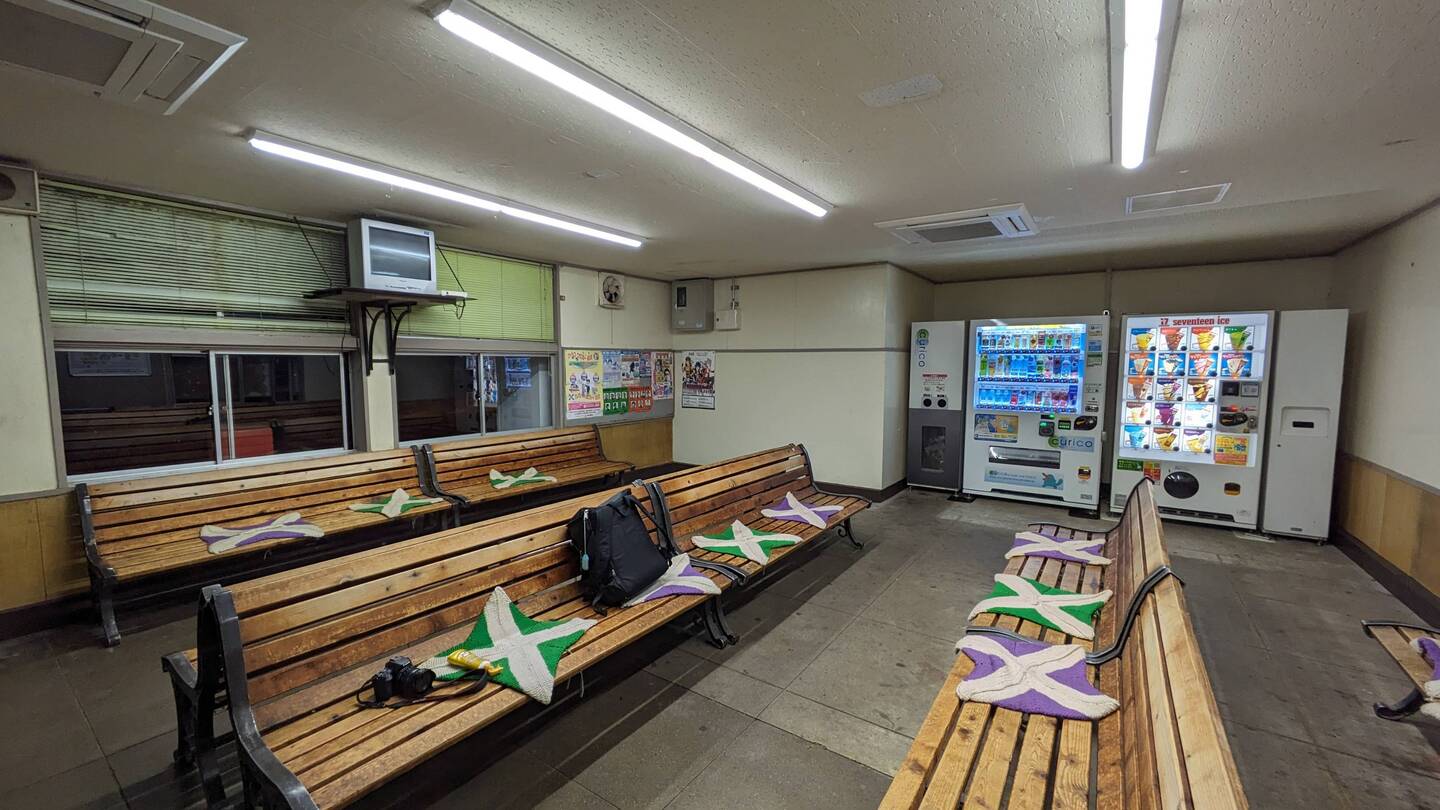 窓口は、待つ人用に椅子が置いてある親切仕様。ここの入場券も持ってないが、この先に行く駅のことを考えると、ここで夜ご飯を買わないと詰む可能性があるので、そちらを優先。またの機会に。