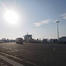 Tja Pustekuchen - die Autobahn endet in Calais einfach mal direkt IM Hafen und eine Kurve später stand ich auch schon vor dem ersten Schalter zur Passkontrolle.