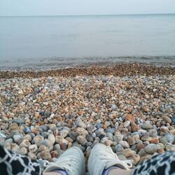 Ich fuhr zu einem Stellplatz, den ich vorher schon rausgesucht hatte und da es noch hell war, fand ich ihn zum Glück auch schnell. Der Platz lag direkt an der Strandpromenade und die großen Kiesel leuchteten in der untergehenden Sonne wunderschön orange-rot. Waaaaahhh endlich angekommen, dieser Anblick und der Geruch nach Meer, ließ mich die ganze Aufregung vergessen 🏴🌊☀️