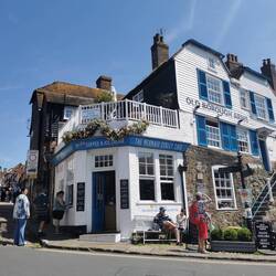 Erst gings am Hafen von Folkstone entlang, am Fischmarkt vorbei und dann immer schön den steilen Berg hinauf. Oben angekommen und nach 20min schon fix und fertig musste ich leider feststellen, dass mein Navi mich verarscht hatte - ein Drehkreuz verhinderte, dass ich weiterfahren konnte und zu Fuß bzw. ein anderer Weg wäre zu weit gewesen... Naja, dann bleibt diese Station eben evtl. für den Rückweg. Wieder unten am Berg angekommen, sah ich ein kleines uriges Café - da ich noch nicht gefrühstückt hatte, beschloss ich mir zur Feier meines ersten richtigen Urlaubstages eine Kleinigkeit zu gönnen 🙃 Es gab Spiegeleier auf getoastetem Brot, dazu einen Saft aus der Tüte - mein verkürzter Ausflug gefiel mir sehr 😁👌🏼.