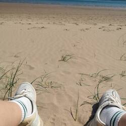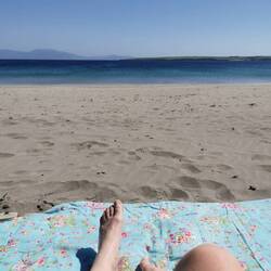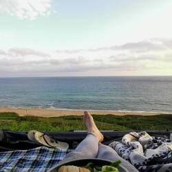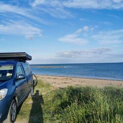Ich hielt am Carownisky Beach und machte einen kleinen Spaziergang im Sand - das wird wahrscheinlich heute die letzte Gelegenheit sein, meine Füße ins Wasser zu halten, also genoss ich es nochmal besonders. Es war mild, aber wieder ordentlich windig. Also Campingstuhl raus, Decke um die Beine und das Näschen zur Sonne. Ich war die letzten Tage sehr faul mit Schreiben, also war jetzt Nachsitzen angesagt. Gibt Schlimmeres bei dem Ausblick :)Read more
