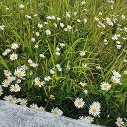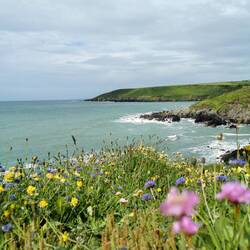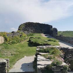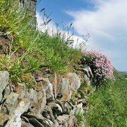 Die gestapelten Steine und Reste der Burg waren teilweise schon mit Gras überwachsen und durch die zarten bunten Blumen überall, sah alles ganz bezaubernd aus, im Hintergrund das Meer - einfach nur schön!