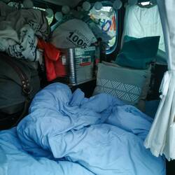 Ich hatte diese Nacht unten im Auto geschlafen, da ich mich sonst ein bisschen sehr auf dem Präsentierteller gefühlt hätte und es über Nacht regnen sollte. Es war natürlich deutlich enger wie oben im Zelt, ging aber trotzdem echt gut und ist als Alternative absolut in Ordnung 👍🏼:)