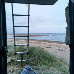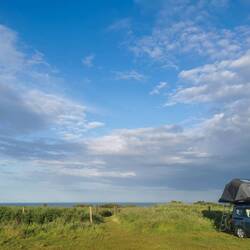 Die erste Nacht war nicht so wirklich erholsam. Die Angler waren noch einige Stunden da, aber das störte mich eigentlich nicht. Es war mehr der Wind, der zwar nicht sonderlich stark war, aber dafür sorgte, dass die Verbindungen der Drahtseile am Dachzelt ständig klimperten und das Zelt ein bisschen flatterte. Außerdem war es doch ziemlich frisch mit meiner normalen Decke, für die nächste Zeit muss ich wohl doch nochmal zu meinem geliebten Daunenschlafsack greifen 🥰🤗