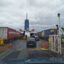 Nach ein paar Minuten kam ein netter Kontrolleur und ließ sich mein Ticket zeigen. Da ich so früh schon da war bot er mir an, eine Fähre früher zu nehmen, da die noch da war und noch Plätze frei waren. Na umso besser 🤗👍🏼🤩 Dieser Teil war jetzt zum Glück nicht mehr so aufregend, schnell waren alle im Schiff verstaut und ich suchte mir ein ruhiges Plätzchen, um mein Vesper zu essen und das Formel 1-Rennen zu schauen. Bis auf ein paar WLAN-Aussetzer klappte das dann auch - Lando wurde zweiter und ich war im Glück :)