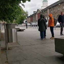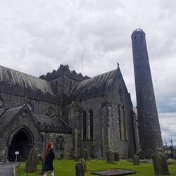 Danach gings zu Fuß nach Kilkenny und nach ca. 25 Minuten entlang des River Nore war ich in der Innenstadt. Hier war es ganzschön trubelig, vor allem ums Schloss und den Platz davor tummelten sich die Leute. Ich ging erstmal weiter, durch die Buttership Lane bis vor zur St. Cainnech-Kathedrale, wo ich auf den 30m hohen Rundturm stieg. Der Turm ist innen so schmal, dass gerade einmal die Treppen reinpassen, die nach oben hin immer steiler werden. Bei Gegenverkehr musste man sich kurz echt was überlegen 😃 allein der Aufstieg war es wert, der Blick von oben war aber auch schön :) Wieder heil unten angekommen machte ich meine kleine Touri-Runde zuende und kam wieder vorne am Platz an. Hier gab es einen kleinen Markt mit ein paar Ständen und Fressbuden. Ich entschied mich für Pizza und setzte mich ein bisschen abseits zu einem jungen Typ, der sang und Gitarre spielte. Das is hier schon cool in Irland, gefühlt an jeder Ecke wird Lifemusik gespielt und es kommen Leute zusammen.