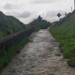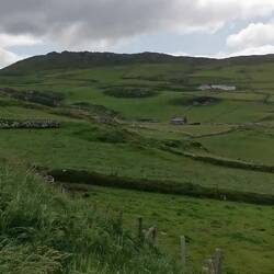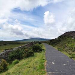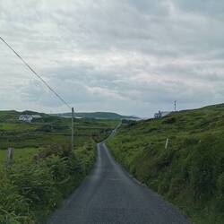 Eeeeeeeees ging es weiter nach Westport. Von hier wollte ich nun endlich die Radtour starten, auf die ich mich schon von Anfang an gefreut hatte. Es war bewölkt und gegen Mittag sollte es evtl. regnen, aber im Großen und Ganzen sollte es ganz gut bleiben. Es ging ein kurzer Stück noch durch Westport, bis ich auf den Greenway gelangte, der bis Achill Island führen sollte. Diese Greenways gibt es hier überall (das sind ausgeschriebene Rad- und Spazierwege) und dieser hier war teilweise ganz frisch gemacht worden und dadurch super zu fahren. Es ging schön durchs Grüne, zwischen Weiden mit Schäfchen und an einem Fluss entlang. Leider sah man das Wasser überhaupt nicht, ich hatte irgendwie gedacht, das das den ganzen Weg über der Fall sein würde. Naja ok, war trotzdem schön. Bis zum ersten der zwei schönen Strände auf Achill island sollten es knapp 4h sein, von da wäre es dann nochmal ca. 1h bis zu dem Hostel, das ich gebucht hatte (knapp 60km an einem Tag sollten reichen und ich freute mich jetzt schon auf eine gescheite Dusche heute Abend 🤗). Nach der Hälfte der Wegstrecke ca. kam ich am höchsten Punkt der Route an. Jetzt wurde endlich auch die Sicht aufs Meer frei, was bis zum Ende auch so bleiben sollte :) ich war eigentlich ganz zufrieden, bis hier hin war das echt ganz gut gegangen 👍🏼