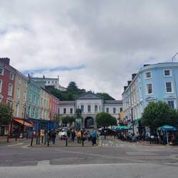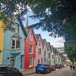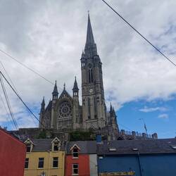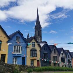 Als ich wieder zurück am Pier in Cobh ankam, überlegte ich noch ins Heritage Center zu gehen, ein Museum über die Titanic, die große Hungersnot und die Lusitania - als ich die Menschenmassen darin sah, überlegte ich es mir anders - für den Tag hatte ich vielleicht auch schon genug Geschichtsträchtiges gesehen🤷🏼♀️ Anstelle dessen ging ich noch die Straße hoch zum "Deck of Cards", eine Reihe bunter Häuser an einer brutal steilen Straße, die an die Lombard Street in San Francisco erinnert. Dahinter wieder die Kathedrale, das sieht schon echt cool aus!