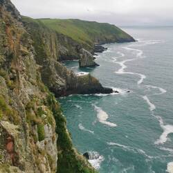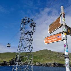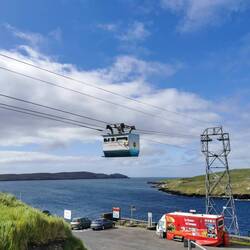 Nach kurzem Aufräumen ging es los, den Schleichweg zurück auf die normale Straße. Ich wollte zur Dursey Cable Car, einer kleinen (ursprünglich) Viehgondel, mit der man nach Dursey Island übersetzen konnte. Auf dem Weg dahin hielt ich kurz bei Dunboy Castle, einem Geisterschloss. Der Weg dahin war wieder einmal eine Augenweide - der verwachsene Schotterweg, nebendran eine Pferdekoppel und dann das Wasser das an den Seiten über und über mit Rhododendron bewachsen war. Das Schloss selber war irgendwie ziemlich gruselig und ringsrum abgesperrt mit Bauzäunen, aber über den morgendlichen Spaziergang freute ich mich trotzdem :) Weiter zur Cable Car... Das winzige Ding kam gerade rechtzeitig auf meiner Seite an, als ich vorfuhr. Da ich später noch eine Boatstour gebucht hatte und man bei der Cable Car immer mit Verzögerungen rechnen muss, da die Locals und ihr Vieh Vorrecht haben, bin ich nicht rüber nach Dursey Island, sondern beobachtete sie nur ein bisschen von unten und ging an den Klippen entlang.