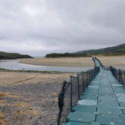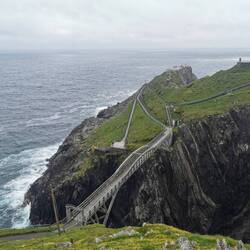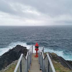 Den schwebenden Steg gab es auch, nur gab es irgendwie nicht genug Wasser, dass er hätte wirklich schweben können 😅👌🏼 Naja, ich ging trotzdem drüber und bis vor an den Hauptstrand. Es war gerade Ebbe und man konnte sehr weit nach vorne laufen bis zum Wasser. Die Strände hier sind echt wunderschön, ganz feiner weißer Sand und tüekisfarbenes Wasser - wären die Temperaturen ein bisschen anders, es wäre paradiesisch (wobei es das optisch auch so allemal ist!!). Nachdem ich mein Vesper verspeist hatte ging es zum Auto zurück und weiter zum Leuchtturm. Mittlerweile war es schon 16.15Uhr und damit kurz vor Schließzeit, aber die Station wollte ich noch mitnehmen. Der Weg zum Mizen Head war spektakulär, wie die Brücke da so zwischen den Felsen hängt und der Blick runter auf den ganzen Komplex und die Insel, das sieht schon richtig cool aus! Ich ging die einzelnen Aussichtsplattformen ab und schaute mir das kleine Museum in der Leuchtstation an,dann war es auch schon Zeit wieder umzudrehen. Es wurde Zeit sich einen Schlafplatz zu suchen. Auf dem Rückweg auf die Hauptstraße hatte ich nochmal einen super Blick auf den Barley Cove Beach, es ging vorbei an saftigen grünen Wiesen und süßen Kühen die gemütlich in der Gegend umherschauten und die glaub ich wirklich im Leben nicht auf die Idee kämen über die teilweise nur kniehohen Steinmauern, die die Felder trennen, zu steigen... 😃🐮🤗