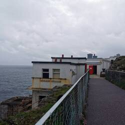 Bis zum Leuchtturm war es noch ein Stück, deshalb wartete ich auf ein Sonnenloch, schnappte mir mein Rad und fuhr los, um mir zum Abschluss des Tages den Turm von der Nähe anschauen zu können. Es ging ziemlich steil die Straße runter und weil es anschließend wieder ordentlich hoch ging, ließ ich es laufen. Unten ging es durch ein Tor und direkt dahinter tauchte so ein Speedbump auf. Ich bremste scharf ab, sodass ich verhindern konnte dass es mich reinhaute, aber immernoch schnell genug um flott weiterzufahren - in dem Moment schoss jemand von rechts auf mich zu und schrie wild mit den Armen fuchtelnd STOP STOOOOP. Huch, wo kam der denn her!? Ich tat wie mir geheißen - es stellte sich heraus, dass das der Wart vom Golfplatz war (ich hatte auf der Karte vorher wohl gesehen, dass es da durch einen Golfplatz ging, aber ich wollte ja NUR zum Leuchtturm, und dachte nicht dass das ein Problem werden könnte 🤷🏼♀️). Ok, seinem Gesicht nach zu urteilen, hatte ich ihn wohl etwas überrascht, nach dem kurzen Schreckmoment hatte er aber direkt seine irisch-förmliche Gelassenheit zurück und erklärte mir geduldig, dass es sich hier um einen exclusiven Golfplatz handle, bei dem die Leute ein Jahr im Voraus buchen mussten und es 400€ pro Person koste, einen Platz zu bekommen. Uppsi, dann war das also auch geklärt 😅✌🏼 Er verwies mich auf die Klippen vor dem Eingang des Platzes und die Infotafeln zu deutscher Geschichte oben auf dem Hügel, da ich ja aus Deutschland bin, wäre das ja sicher auch sehr interessant für mich... Ja toll danke, eigentlich war ich ja nur wegen dem Leuchtturm hier in die Pampa gefahren, das war ja mal ein mega Fail 🙄🤦🏼♀️