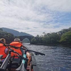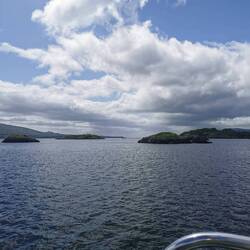 Der erste Part der Tour war die Fahrt mit einem Oldtimer zum Ross Castle im Killarney Nationalpark. Dort angekommen hatten wir 45min Zeit für die Besichtigung, bevor es weitergehen sollte. Hmm ok, das hätte ich jetzt nicht gebraucht, aber gut wenn wir schon hier sind... Die Besichtigung der Räume war nur mit Führung möglich und da startete die nächste erst eine halbe Stunde nachdem wir schon wegmussten, na das war ja 1A geplant. Naja gut dann sah ich mir eben draußen alles an und zum Glück verging die Zeit auch recht schnell und es konnte weitergehen. Part II der Tour beinhaltete eine Bootstour durch den Lough Leane, den Muckross Lake sowie den Upper Lake bis zur Lord Brandon's Lodge. Unser Bootsmann erzählte ein bisschen über die Gegend und zeigte uns alle Highlights auf dem Weg.