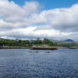 Weiter nach Kenmare. Ich hatte noch ein bisschen Zeit bis es losgehen sollte zur Kenmare Bay Boat Tour, also wollte ich mir vorher noch das Städtchen ansehen. Direkt am allerersten Laden war damit auch schon Schluss. Hier wurden irische Wollsachen verkauft und ich stöberte mich durch. Meine Eltern haben mir vor Jahren schon mal so einen schönen weißen Pulli mitgebracht. Leider war der viel zu klein, deshalb hatte ich ihn nie an... Erst schaute ich nach den ganz typischen weißen mit den Mustern, dann entdeckte ich aber einen grünen und als ich ihn anzog war ich direkt schockverliebt - also gut, einmal einpacken bitte😍🧥🤗 Die überschüssige Zeit war aufgebraucht. Ich fuhr noch das kurze Stück weiter zum Pier und dann gings rauf auf das kleine Boot. Ich freute mich sehr, in der Beschreibung hieß es, man würde die größte Kegelrobben-Kolonie in Irland und evtl. Delphine und mehr Wildlife sehen können. Joa, diese Erwartungen wurden leider in Gänze enttäuscht. Zugegeben in Summe haben wir vier Robben gesehen, ansonsten wurden aber nur das alte Hafengebäude und ein altes Schloss das kaum zu sehen war hinter den Bäumen, angepriesen. Die vorwiegend englische Gesellschaft an Bord störte das wenig, die waren mehr damit beschäftigt zu plaudern und Fotos aufzunehmen auf denen sie nicht dick oder im Gesicht zu kinnlastig aussahen, hätte man ihnen einen Prosecco in die Hand gedrückt wäre die Kaffeefahrt perfekt gewesen 🙄🙈 Naja, ich versuchte die Landschaft zu genießen und freute mich am irischen Akzent des Bootsführers - irgendwie hört sich Irisch für mich wie indisches Englisch an, ist ne blöde Beschreibung, aber das ist irgendwie das erste an das ich dachte als ich es gehört habe, richtig putzig 😅🤗