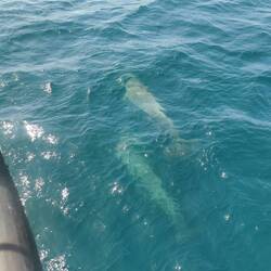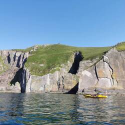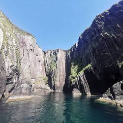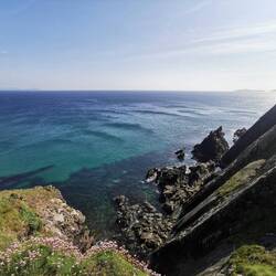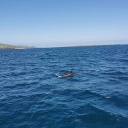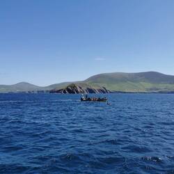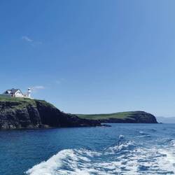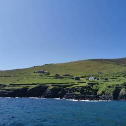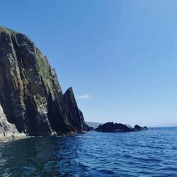 Um 9 Uhr brach ich auf zum Pier in Dingle. Ich fand direkt einen Parkplatz und konnte entspannt am Hafen entlang laufen. Der junge Mann am Schalter zur Dingle Dolphin Boat Tours begrüßte mich gut gelaunt und ich war eingecheckt. Nach der letzten missglückten Bootstour hoffte ich heute auf etwas mehr. Vier Stunden Wildlife-Tour hörte sich zumindest schon mal vielversprechend an :) Es ging los, raus aus dem kleinen Hafen, entlang der roten Sandsteinklippen, die teilweise tolle Figuren machten und dann weiter raus auf den Atlantik. Bereits nach kurzer Zeit tauchte ein einzelner Delfin auf und begleitete uns ein kleines Stück. Insgesamt sahen wir zwei verschiedene Arten Delfine, ein paar Seehunde, eine Art Rochen und einen monströsen Hai (sah für mich aus wie ein weißer Hai, aber ich habe keine Ahnung). Dazu noch etliche Seevögel, die teilweise aussahen wie Pinguine. Der Kapitän meinte, sie hätten letzte Woche Finnwaale gesehen, dieses Glück hatten wir leider nicht, aber auch so bin ich diesmal absolut auf meine Kosten gekommen 🐬🦭🦈🐳🐧