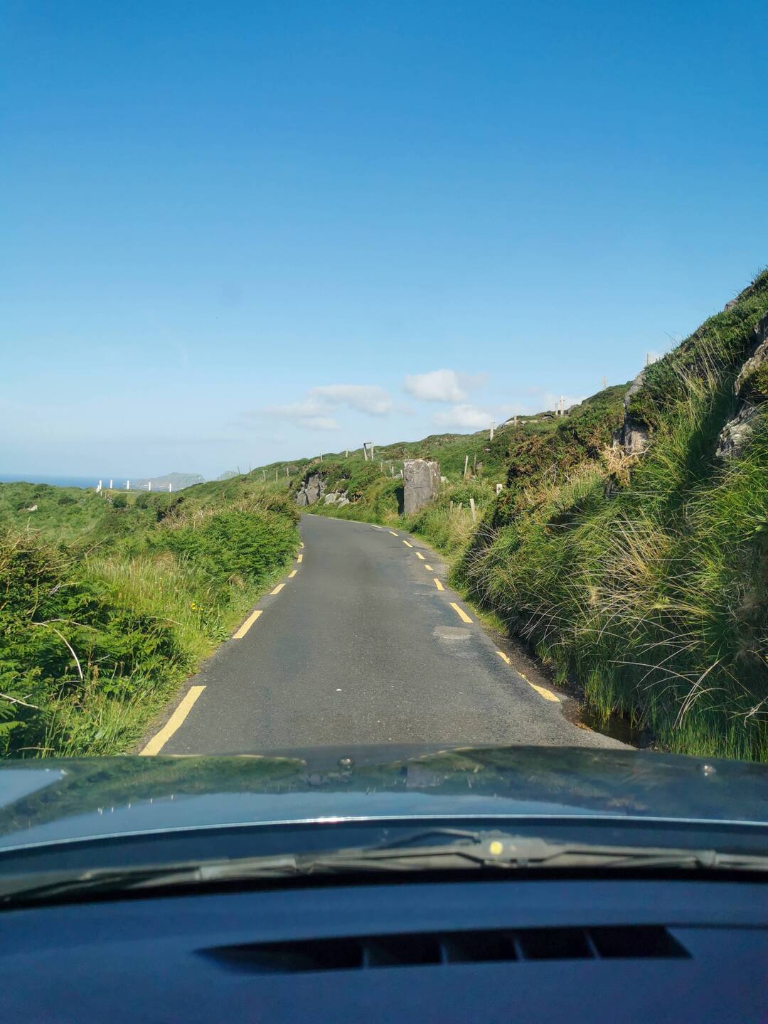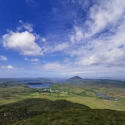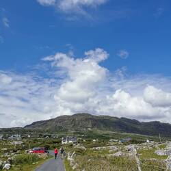 Ich war total gerädert. Die Nacht war furchtbar gewesen, ich war ständig aufgewacht weil entweder Leute am Strand rumschrien, der Wind am Zelt rüttelte oder irgendwer mit dem Auto angefahren kam, um kurz drauf wieder wegzufahren. Dementsprechend zäh war mein Start in den Tag. Ich packte kurz zusammen und frühstückte erstmal. Heute stand die Wanderung auf den Errisbeg an und da gegen Mittag die Sonne erst richtig rauskommen sollte, hatte ich noch ein bisschen Zeit gemütlich zu machen. Die 1,5h Fahrt versüßte ich mir mit Podcast hören und dann war ich auch schon am wunderschönen Gurteen Beach angekommen, von wo aus ich starten wollte. Es ging erstmal ein ganzes Stück an der Straße entlang. Das ist hier ja schon witzig - hier gibt's so viel Natur, aber alles joggt, spaziert mit den Hunden oder flaniert in Warnwesten an der Straße entlang, ich glaub so richtige Spazierwege hats hier garnich. Ich fiel also nicht besonders auf, als ich die enge Hauptstraße entlanglief und für den ein oder anderen kleinen Stau sorgte, alle lächelten mir zu und grüßten - ein freundliches und gut gelauntes Völkchen die Iren 😍🤗