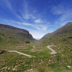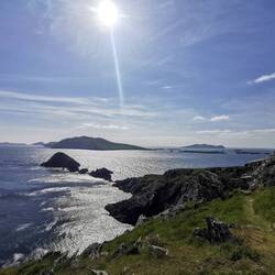 Der nächste Halt war Glengarriff Woods, ein Naturreservat in dem ich einen längeren Spaziergang machen wollte und der Start für den Ring of Beara (der deutlich weniger überlaufene, aber wohl mindestens genauso schöne Ring zum berühmten Ring of Kerry). Es ging vom Parkplatz erst zum Wasserfall (goldiges kleines Ding, im Vergleich zu Norwegen wirklich winzig, aber für irische Verhältnisse wohl schon ein Prachtexemplar 🤗), dann eine große Runde immer dem Esknamucky Walk (jap der heißt wirklich so süß) nach, auf den Lady Bantry's Lookout und wieder zum Parkplatz. Das war schön :) da es schon zu spät für die Dursey Cable Car war, fuhr ich nur gemütlich noch ein Stück weiter, bis zu meinem heutigen Schlafplatz. Es war erst 16 Uhr, aber die Sonne strahlte und so schnappte ich mir meinen Campingstuhl und machte es mir gemütlich. Als die Sonne langsam unterging, fiel das Licht so wunderschön aufs Wasser und ließ das Grün der Hügel und das Blau des Wassers fast magisch leuchten. Ich ging vor zur Spitze des Platzes und staunte vor mich hin. Dieser Ort und dieser Moment ist definitiv ein weiteres Highlight - absolute Ruhe, keine Menschen und nur das Plätschern der Wellen und das Sausen des Windes 😍🤗❤️Read more