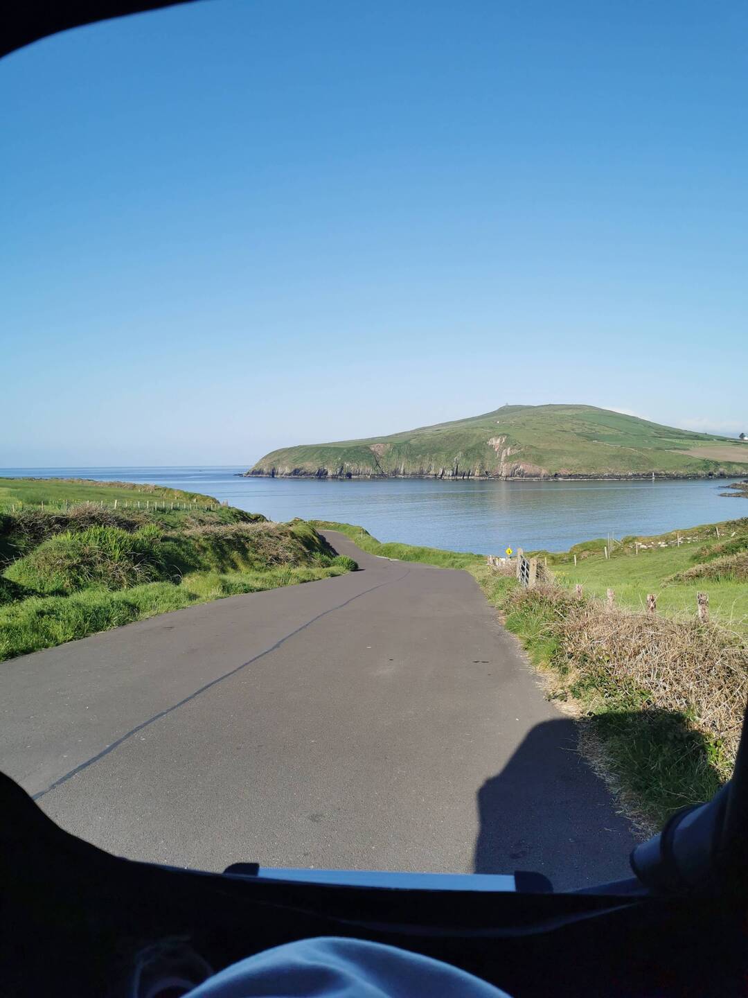 Als ich in Pembroke ankam, war schnell klar, dass es diesmal nicht wie am Hafen in Calais laufen würde - als ich dann aber einfach rechts wie in ein Industriegebiet einbiegen musste und direkt vor dem Schalter stand, war ich dann doch etwas verdutzt. Vor dem Schalter waren ein paar Parkflächen eingezeichnet und ich wollte gerade parken, da beugte sich die Dame im Schalter schon aus ihrem kleinen Kabuff heraus und winkte mich freundlich zu sich. Völlig überfordert (mal wieder) fuhr ich hin und ließ das rechte Fenster runter. Ich wollte nach meinem Pass greifen, da rief sie mir schon zu "Are you Lisa?" - hö? Ok, hier wird man also direkt persönlich begrüßt, wieviele fahren denn mit, dass die die Nummernschilder schon auswendig weiß!?!? 😅👌🏼Ich bejahte ihre Frage und schon streckte sie sich aus ihrem Häuschen in mein Auto und hielt mir freudestrahlend mein Ticket hin. Ok, das war definitiv anders als die Geschichte in Frankreich, in Pembroke reicht also der Vorname zum Reisen, auch nicht schlecht 😂😂👌🏼 Ich musste nurnoch durch ein Tor und schon stand ich vor der Fähre. Mit mir warteten nur eine Hand voll anderer Autos und als wir verladen waren stellte ich fest, dass es tatsächlich nur so um die 20 Autos waren. In der Fähre suchte ich mir ein Plätzchen und vesperte erstmal. Der Kapitän machte eine Durchsage und hatte irgendwie Schwierigkeiten mit dem Knopf für die Mikrofone - es ertönte ein Gong mit anschließender Ansprache Ladies & Gentleman - dann Knistern und Stille - dann wieder der Gong + Ladies & Gentlemen. Nach vier Anläufen brachte er dann aber doch auch den Rest noch raus. Ich hörte erst nicht richtig hin, aber nachdem ich mit halbem Ohr hörte wie er meinte "In case of emergency, don't panic, don't run, take some warm clothes and go outside...but I think we won't need that today...", wusste ich nicht, ob ich beunruhigt sein oder lachen sollte. Naja hoffen wir mal das Beste🤞🏼Ich ging nach draußen, um den kleinen Fjordcruise mitzubekommen. Leider gab es nicht so richtig was zu sehen und ich machte es mir drinnen gemütlich. Als ich gerade am einnicken war, sah ich plötzlich zwei Delphine aus dem Wasser springen. Ich dachte schon ich halluziniere im Halbschlaf, aber da tauchte sie nochmal auf 🥰🙃🤩 Ich sprang direkt auf und bin raus, aber da sah ich dann leider nix mehr. Egal, die Sonne schien und nach einer weiteren halben Stunde landeten wir im Hafen von Rosslare. Die Abwicklung war genauso unkompliziert wie bei der Abfahrt und schon war ich auf irischem Boden unterwegs. Die grüne Insel machte ihrem Namen direkt alle Ehre, vom Straßenbild war es eigentlich ähnlich wie in England (vielleicht noch ein bisschen mehr Schlaglöcher), aber die Begrenzungen waren weniger dünenhaft, mehr aus hohen Büschen, Bäumen oder saftigen Hecken. Was mir auch direkt auffiel waren die vielen Steinmauern, die Felder und Fiehweiden einzäunen, vor allem Kühe hats hier viele (garnich so viele Schafe, wie ich erwartet hatte), die fleißig am Kerrygold-Butter-Produzieren waren :)