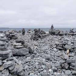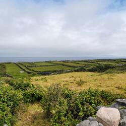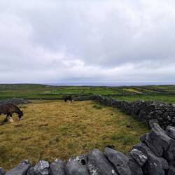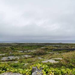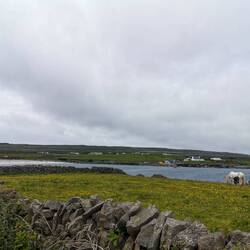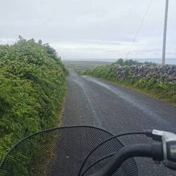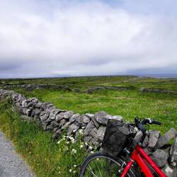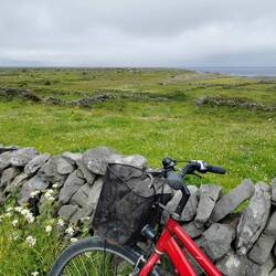 Der Tag startete bewölkt. Ich hatte eine ruhige Nacht an den Bridges of Ross gehabt und freute mich, heute nicht an irgendwelche Termine bzw. Zeiten gebunden zu sein. Ich lag noch eine ganze Weile im Zelt und beobachtete die Wellen unter mir. Nach einem kurzen Check des Wetters merkte ich, dass es heute doch garnicht so gut angesagt war. Ich beschloss heute erst auf die Aran Inseln zu fahren und die Kliffs of Moher hinten anzustellen, wenn es wieder mehr nach Sonne aussah. Die letzte Fähre auf die Inseln, die am Mittag auch wieder zurück ging, sollte um 11 ablegen und ich musste noch knapp 1,5h fahren. Hui jetzt aber schnell, sonst wird das nix😬🙈 Also fix das Zelt verstauen und losgebrezelt (das war glaub ich das allererste Mal in diesem Urlaub, dass ich tatsächlich die Geschwindigkeiten gefahren bin, die hier vorgegeben sind🫣). Es war eine wilde Fahrt und dort angekommen musste ich ja noch einen Parkplatz finden. Ich dachte es würde ein ruhiger Tag werden und jetzt hatte ich mehr Stress als die ganzen letzten Tage 🤦🏼♀️ Schnell das Fahrrad abgeschnallt und ab zum Pier. Puhh, ich kam gerade noch rechtzeitig an zum Boarding. Zu meiner Enttäuschung durfte man eigene Fahrräder garnicht mitnehmen, da die Fähren zu 'busy' seien. Natoll🙄 Aber gut was solls, drüben gab es einen Verleih.