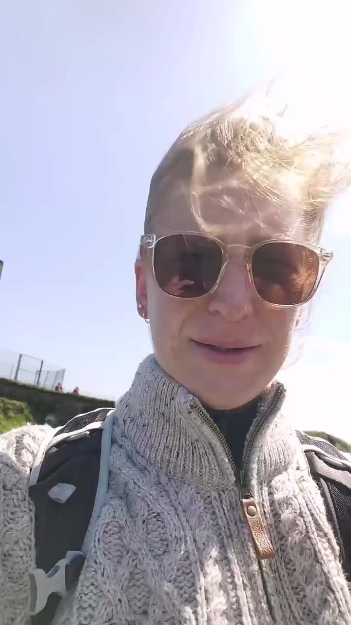 Es ging zu den berühmten Cliffs of Moher. Ich parkte in der Nähe des Moher Towers, ganz unten am Ende des Cliff Walks. Schon auf dem Schotterweg vor zu den Klippen merkte ich, dass der Wind heute eine neue Kategorie war. Die Leute die mir entgegen kamen, waren dick eingepackt und die Kapuzen ganz eng zusammengezurrt um die Gesichter. So wie es einen hier auf dem Weg schon hin und her schubste, konnte das da vorne ja ein Spaß werden. UND WIE ES DAS WURDE!!! Vorne am Tower angekommen, bekam ich ernsthaft Zweifel, ob das wirklich eine gute Idee war, da jetzt an den Klippen entlang zu gehen. Der Wind war so heftig und kam gefühlt gleichzeitig von allen Seiten, dass man sich richtig konzentrieren musste. Die Leute hielten sich an irgendwelchen Sachen fest und wenn sie liefen sah es aus, als würden sie von einem Unsichtbaren hin und hergeworfen. Beim Versuch Fotos zu machen, konnte ich das Handy nicht still halten und hätte das Mädel nicht schnell reagiert, wäre mir auch direkt meine Sonnenbrille abhanden gekommen 😅🙈 Es war verrückt!!