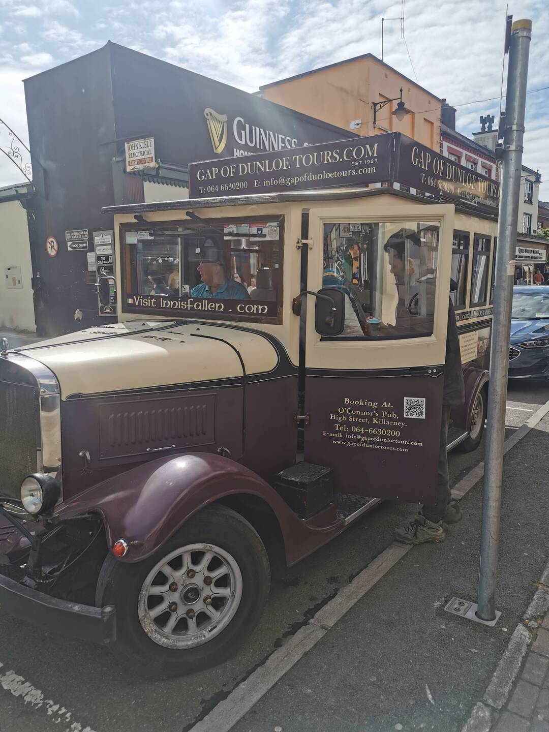 Nach der schönen Bootsfahrt gestern stand heute schon die nächste Tour auf dem Plan - die Gap of Dunloe Tour. So viele gebuchte Sachen hab ich noch nie in einem Urlaub gemacht, aber ich muss sagen, die Preise sind echt ok und manches hatte ich jetzt das Gefühl macht mehr Sinn geführt, als wenn man selber in der Gegend rumeiert und nachher nur die Hälfte sieht. Start der Tour war in Killarney, am O'Connors Traditional Pub. Ich war früh dran, meldete mich kurz an und sah mich noch ein bisschen um. Die Läden waren noch geschlossen, also gab's nicht wirklich was zu sehen, deshalb machte ich noch mein Vesper fertig und wartete auf das Zeichen, dass es losgeht.