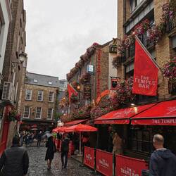 Lenni schlief bis 7 Uhr, wodurch die Nacht für mich deutlich länger ausfiel als ich erwartet hatte. Wir starteten ganz gemütlich in den Tag, mit einem kleinen Frühstück. Gegen 11 Uhr sollte ein Flohmarkt aufmachen, zu dem wir gehen wollten, Lenni blieb aber natürlich nicht so lange still sitzen, also gingen wir los und machten noch einen Abstecher am Spielplatz. Als wir am Flohmarkt ankamen war der schon gut besucht. Da war eine ganze Halle voll mit Ständen, mit ganz viel Klamotten aber auch anderem Krimskrams. Sogar ein DJ war da und legte Musik für die kauffreudigen Leute auf. Wir stöberten uns durch die Sachen und wurden auch beide fündig :) Danach gingen wir noch ein Stück Richtung Stadtkern zusammen, bevor Teresa und Lenni Richtung ihrer Wohnung abbogen und ich alleine loszog. Vielleicht konnte ich ja jetzt endlich noch ein paar Mitbringsel für daheim finden. Auf dem Weg zur Shopping-Meile gings erstmal durch das berühmte Viertel Temple Bar. Hier reiht sich ein Pub an den nächsten und wenn man Abendprogramm und Livemusik sucht, ist das auf jeden Fall the place to be👌🏼. Ich ging weiter zur George's Street und zur Grafton Street und shoppte mich von Laden zu Laden. Ok, wenn man Shopping liebt, ist man hier auf jeden Fall richtig, die Kreditkarte glühte, das wird noch spaßig, wenn die Abrechnung kommt🙈 Ich fand echt schöne Sachen, unter anderem ein paar Fressalien und ein Weinchen aus den Wicklow Mountains. Hochzufrieden ging ich zu PI Pizza, um mich von meiner erfolgreichen Tour zu stärken. Ich war echt ganzschön platt, weil ich heute schon gut Strecke gemacht hatte. Ach jetzt noch ein bisschen Livemusik und ein Pint zum Abschluss, komm das geht jetzt schon noch. Teresa hatte mir zuvor noch geschrieben, dass eine Freundin von ihr in einem Pub in meiner Nähe auftreten würde, also wollte ich mir das mal ansehen. Als ich in den Pub schaute war da aber eher so Restaurant-Stimmung und es war auch keine Musik zu hören. Direkt gegenüber gings dafür schon ziemlich ab und ich beschloss hier einen Versuch zu wagen. Der kleine Pub war proppenvoll, also quetschte ich mich mit meinen zwei überdimensionalen Shoppingtaschen, randvoll gefüllt mit Kram, bis vor zur Bar, wo noch ein Hocker frei war. Ich bestellte ein Guinness (keine Ahnung was zur Zeit los ist, dass ich plötzlich Bier trink.. Auf der einen Seite wird man irgendwie nicht ganz so Tourimäßig angeguckt, auf der anderen Seite finde ichs irgendwie garnich mehr so abartig... Bissl gruselig, bin mal gespannt ob das so bleibt, oder ob mich hier einfach die Stimmung mitgezogen hat😅🤷🏼♀️) und ließ die Stimmung auf mich wirken. Natürlich blieb ich nicht unbemerkt. Neben mir war eine Gruppe älterer Herren. Paul sprach mich an und war direkt hellauf begeistert. Nach und nach wurden alle seine Kumpels rangezogen und vorgestellt. Ich bekam zu jedem die Kurzfassung und musste meine Geschichte jedes Mal neu erzählen😅 Es dauerte nur ein paar Minuten, dann war ich adoptiert 🤷🏼♀️ Eigentlich wollte ich ja nur ein bisschen Musik hören, aber jetzt war es zu spät, jetzt war ich mittendrin und wenn mein Glas halb leer war, stand direkt schon das nächste da und es wurde 'Sláinte' gerufen, was soviel wie 'viel Gesundheit' bedeutet 👌🏼🍻 Und dann kam Peter, auch Pete genannt. Paul schrie "oh da ist Pete! Warts ab, keine 2 Minuten und er tanzt" - jou, da hatte er recht - der rüstige Mitte/Ende 80-Jährige gab mir zur Aufsicht sein Bier und stürmte die Tanzfläche. Dabei zog er sich immer mal eine Dame heran, setzte ihr seinen Hut auf und drehte sie im Kreis. Als er zum nächsten Lied wiederkam, sah ich es schon kommen - natürlich musste ich auch dran glauben, das Guinness half, dass es mir egal war, dass mich der ganze Pub anglotzte 🤷🏼♀️