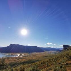 Der Tag startete bewölkt, nach und nach kämpfte sich aber die Sonne durch und der Blick auf das Akka-Massiv, eines der höchsten Berg-Massivs Schwedens wurde langsam frei.