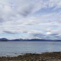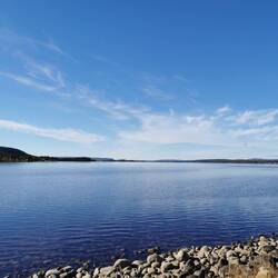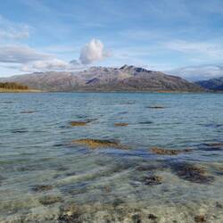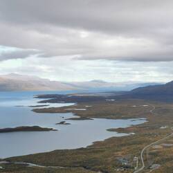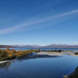Am Auto gab's was zu essen, dann fuhr ich zur Hauptstraße, legte nochmal einen kurzen Zwischenstopp bei einer Raststelle mit schönen Blick über den See bis nach hinten wo man ganz klein die weißen Gipfel sah ein und war froh, als ich unter der warmen Dusche stand die ich mir beim Campingplatz in Jokkmokk kaufen konnte.