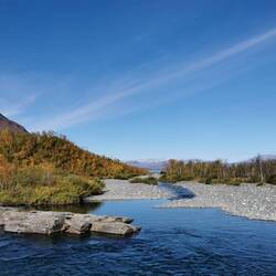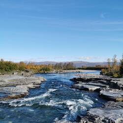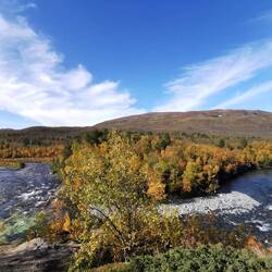 Ich ging als erstes Richtung Canon - wie so oft führten schöne Holzstege am sprudelnden Wasser entlang und als diese aufhörten folgte ich noch einem Trampelpfad bis ganz nach vorne wo das Wasser des Abiskojåkka in den Torneträsk-See fließen. Diese Farbkombination der grün-gelb-orangenen Bäumen mit dem leuchtenden blau des Wassers - davon bekomme ich einfach nie genug 🍂🌿🌊😍🤗