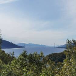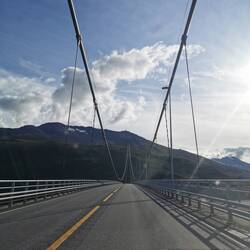 Es ging weiter Richtung Narvik - hier wollte ich mich ein bisschen kundig machen über die Lofoten und die Insel Senja die darüber liegt und mindestens genauso schön sein soll. Schneller als gedacht war ich über die Grenze und Norwegen begrüßte mich schon beim Rausfahren aus den Bergen in alter Manier mit Maustraßen, einem Blick auf einen wunderschönen Fjord mit riesen Brücke und Tunneln (diese verdammten Tunnel, das hatte ich irgendwie erfolgreich verdrängt über die letzten Wochen 😅😬🙄
