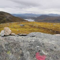 Es ging immer weiter den Pfad entlang. An einem bestimmten Punkt war es dann wieder nurnoch über Geröll und Felsbrocken klettern - auf dem einen Bild sieht man die Steinpyramiden die einem den Weg leiten sollen (wenn man sie denn dann als solche identifizieren kann, weil eigentlich wars mal wieder Wurst wo man klettert, es geht einfach nur hoch... 😅🙈). Keuchend kam ich oben an der 'Gabelung' an, wo es links zum Gipfel des Grytetippen und rechts zum Berg Keipen geht.