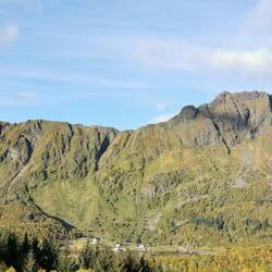 Dann ging es Richtung Lofoten, immer entlang der E10, der Hauptstraße, die sich komplett durchzieht und die Inseln verbindet. Auf den Lofoten ist der Herbst noch nicht ganz angekommen und ich genoss es auch mal wieder etwas grün um mich rum zu sehen. Es war schön einfach der sich schlängelnden Straße zu folgen und diese verrückte Landschaft auf sich wirken zu lassen. Diese massiven Felswände links und rechts der Straße und darunter die winzig aussehenden Häuser mit dem ganzen Wasser überall, das ist schon enorm!