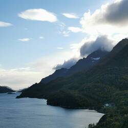 Immer wieder hielt ich an um zu gucken und Bilder zu machen, die die Landschaft und das tolle Licht mit der Sonne einfangen - manchmal denkt man echt man ist im Film, wenn die Gipfel in einer Wolke hängen und die Sonne noch hindurchstrahlt oder wenn der Dunst so überm Wasser hängt - einfach super!!