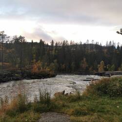 Es war halb 5 - um zum Wasserfall zu laufen war es irgendwie zu spät und auf Laufen hatte ich heute allgemein so garkeine Lust, die kommende Nacht sollte es regnen/schneien, das heißt morgen früh wäre alles nass und rutschig... Ich beschloss es bei diesem kleinen Übernachtungsbesuch im Stora Sjöfallet zu belassen und weiterzufahren Richtung Kiruna.