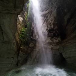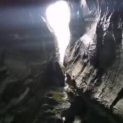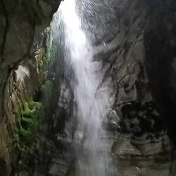 Ich quetschte mich durch ein Deckenloch nach draußen und gelangte so weiter oben zum Eingang der 2. Höhle. Hier ging es erstmal mittels Leiter ein Stück nach unten in den Fels und dann Stand man schon in der 'Guten Stube' in die ein weiterer Wasserfall aus der Wand rauschte. Superschön!!