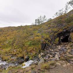 Ich war nur wenige Minuten Autofahrt vom Parkplatz zur Trollkyrkja - meinem heutigen Ausflugsziel - entfernt. Die Trollkyrkja ist ein Höhlensystem, was durch das durchfließende Wasser entstanden ist. Besonderheit ist, dass es sich hierbei um Marmorgestein handelt, was optisch echt verrückt ist! Es wird meine letzte Wanderung der Reise sein, was mich fast ein bisschen traurig macht, aber gleichzeitig freute ich mich auf einen erwartungsgemäß schönen 'Abschluss'. Außerdem wird es mir meine linke Wade danken, dass diese ewige auf-Berge-Gekraxel endlich ein Ende hat, die hat ja schon seit Beginn an rum gezickt... 😄🙈