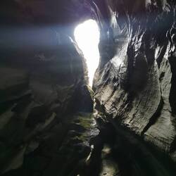 Die Gänge waren aber so geräumig, dass man nie wirklich Angst haben musste stecken zu bleiben und der erste Wasserfall war auch schnell erreicht, wodurch das mulmige Gefühl direkt durch Begeisterung ersetzt wurde. Aus 14m Höhe rauschte hier das Wasser nach unten und ergab mit dem einfallenden Licht (leider schien die Sonne nicht wirklich, sonst hätte das sicher gigantisch ausgesehen🤩) von oben ein tolles Bild!