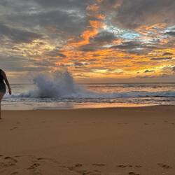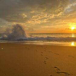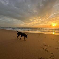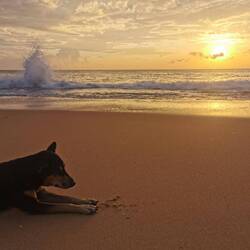 Da der angekündigte Regen heute wohl doch ausblieb und sich ein herrlicher Sonnenuntergang ankündigte, gingen ich vor zum Strand. Unser Nachbar entdeckte mich direkt und wir plauderten und schauten den vielen Hunden zu, die es sich ebenfalls am Strand gemütlich gemacht hatten. Lulu und Sara kamen auch dazu und wir liefen noch ein Stück am Strand. Die Wellen spritzten, die Sonne strahlte und wir waren kollektiv verzückt von allem was wir da so sahen.