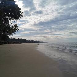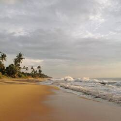 Ich wollte den Tag nochmal richtig ausnutzen und früh los, um die Angler auf ihren Holzpflöcken zu sehen. Deshalb gings schon um 7 Uhr vor zum Strand. Die Affen waren auch schon wach und jagten sich mit wildem Gebrüll durch die Bäume. Der Himmel war grau und für später war Regen angesagt... hoffen wir mal, dass sich der Wetterdienst irrt!