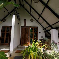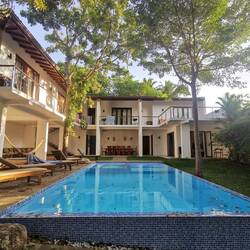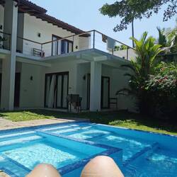 Es ging nochmal vorbei an den schönen bunten Fischerbooten, an den Straßenständen von Weligama und am Strand von Midigama, an dem wir noch vor ein paar Tagen gelegen hatten (heute standen Unmengen an Rollern davor, ich glaube heute hätten wir keine Liege bekommen🤯). Gegen Mittag waren wir in der neuen Unterkunft und die war einfach nur WOOOW! Schon beim Durchtreten des Tors sahen wir den großen Pool, der wunderschön in der Anlage lag. Es war so warm, dass wir am liebsten direkt mit den Klamotten reingesprungen wären. Zu unserem Glück war unser Zimmer schon fertig und wir konnten direkt einziehen. Wir pfefferten nur unsere Sachen rein, zogen uns die Bikinis über und dann gings direkt ins kühle Nass🤩🤩👌🏼Boah das tat so gut!! Wir blieben den ganzen Tag faul auf den Liegen und im Pool stracken und freuten uns an der Ruhe, die hier im Gegensatz zu den letzten Unterkünften herrschte (gut, nebenan wurde natürlich wieder irgendwas gebaut und ab und zu fiel krachend was vom Dach, aber ansonsten war nur das Rauschen von Wind in den Blättern über uns zu hören 😍).